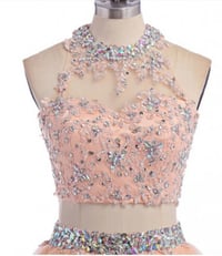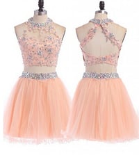 Lovely Light Pink Two Piece Beaded Homecoming Dresses, Two Piece party Dresses